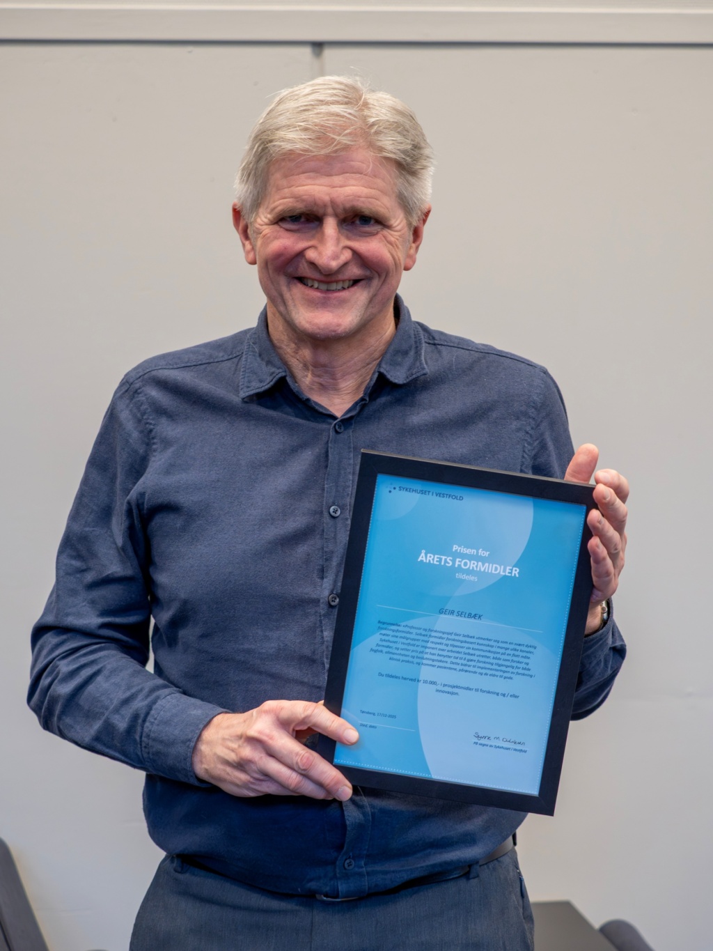 – Han fortjener denne anerkjennelsen også fra SiV, sier Synne Menes Didriksen, i en melding til Aldring og helse. Didriksen er forskning- og innovasjonsrådgiver ved Sykehuset i Vestfold.